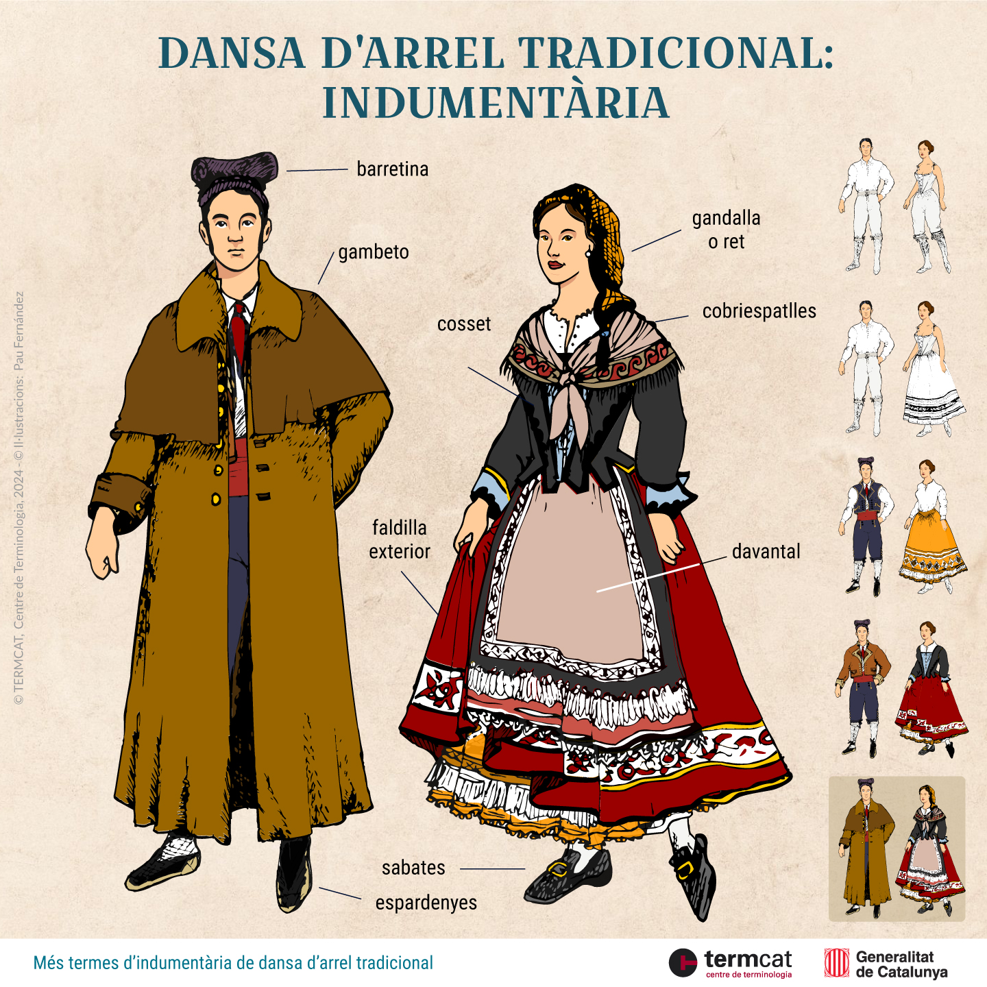 TERMCAT, CENTRE DE TERMINOLOGIA. Dansa d'arrel tradicional: indumentària [en línia]. Barcelona: TERMCAT, Centre de Terminologia, 2024. 1 infografia.